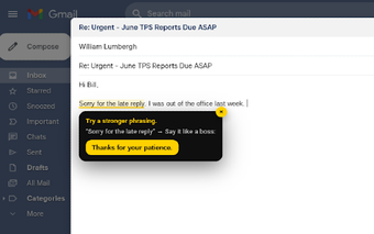 Like A Boss — Confident Writing Coach är ett kostnadsfritt tillägg för Chrome som hjälper användare att förbättra sin skrivförmåga. Programmet erbjuder realtidsanalys av text och kontextmedvetna markeringar som identifierar svag och apologetisk språkbruk. Genom att ge förslag på omformuleringar kan användare enkelt förändra sin kommunikation till att bli mer kraftfull och professionell. Med ett enkelt knapptryck kan man omvandla sina meddelanden till att reflektera självförtroende och ledarskapsförmåga.